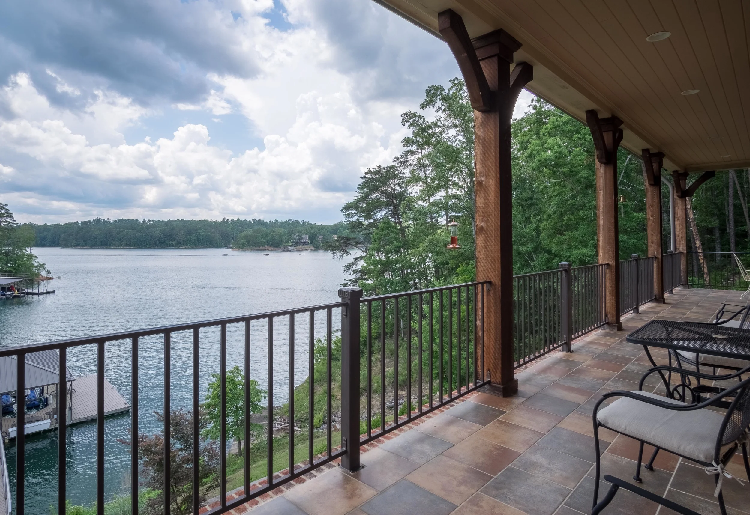 The lot is just perfect. Just a short path down to the lake. Floating on the lake is the top of the line aluminum dock with two boat lifts. GORGEOUS year round water in protected cove.